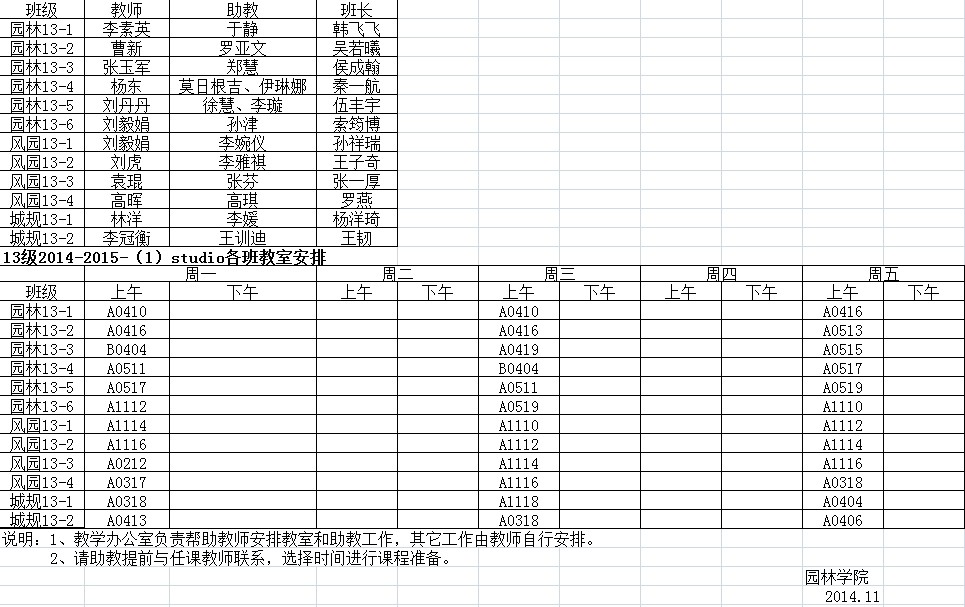 2014级园林学院2014-2015学年第一学期studio课程安排