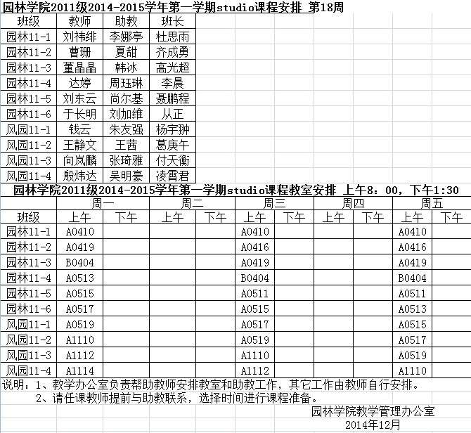 园林学院2011级2014-2015学年第一学期studio课程安排 第18周