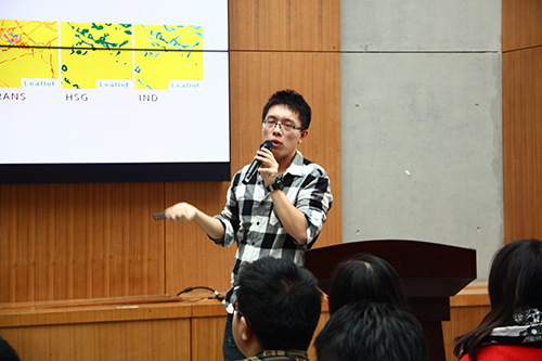来自北京大学的的钱宇阳同学围绕《基于景观过程模拟的城市更新理论与实践探讨》进行演讲,他介绍了基于科研课题研究的景观过程模型构建的理性模拟,多解模拟和感知模拟,以哈佛大学EUC生态城市实验室的Scenariogame为例进行分析,最后总结在解决城市的综合病中首先对现状研究深层次分析,并进行总体定位,完成生态系统设施、交通系统规划及土地功能布局的总体设计,并介绍了“反规划”原理来应对快速城市扩张。