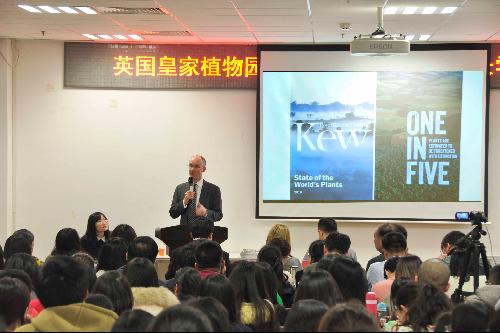 2月21日晚,英国皇家植物园(Royal Botanical Garden, KEW)园长兼执行主任Richard Deverell受邀到我院作了一场题为“大数据能为植物学做什么”的主题学术报告。报告由张启翔教授主持,全校相关专业师生、留学生以及来自北京植物园、北京市科学技术研究院、石家庄植物园、东方园林等相关单位200余人前来聆听讲座。报告会现场座无虚席,气氛热烈,交流频繁。
