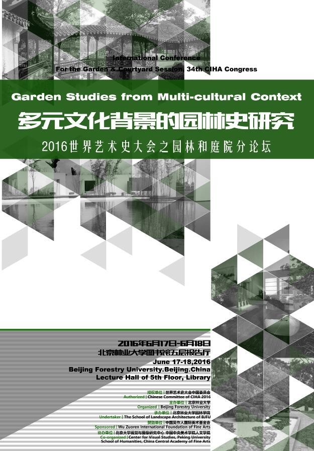 北京林业大学将于2016年6月17-18日主办“2016世界艺术史大会之园林和庭院分论坛”,本次论坛的主题为“多元文化背景的园林史研究”。此次会议由第34届世界艺术史大会(CIHA,Comité International d'Histoire de l'Art)授权,受吴作人国际美术基金会资助,由北京林业大学主办。