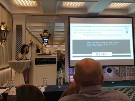 郝培尧老师在绿色技术与生物气候设计分会场做题为《植物绿墙的植物景观效应与应用特征分析:以中国北京,上海为例》的汇报(图2)。她通过对两地30个代表性项目的调查与分析,发现北京、上海地区的绿墙可分为3种类型:单一种植风格、天然混合种植风格和图案装配风格。应用植物61种(包括种/品种)隶属于35科51属,多为多年生草本植物。在报告中对北京、上海地区植物绿墙的设计特单与应用现状予以了介绍。
