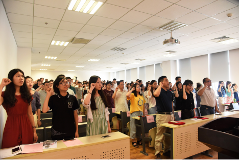 大会最后,全体师生党员重温入党誓词,相信广大党员同志一定会学习先进、争当先进,进一步调整思路,扎实苦干,为继续推进“两学一做”学习教育常态化制度化和深化责任教育做出贡献,为学院发展助力添彩!