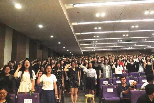 毕业典礼尾声,全体毕业生们集体宣誓,抒发对母校的情谊,同时表示对绿色事业奋斗终生的决心。
